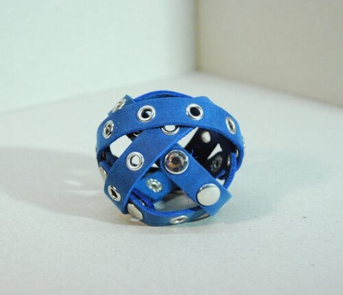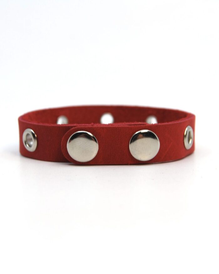 Metalinėmis akutėmis dekoruota odinė apyrankė susegama dvejomis spaudėmis