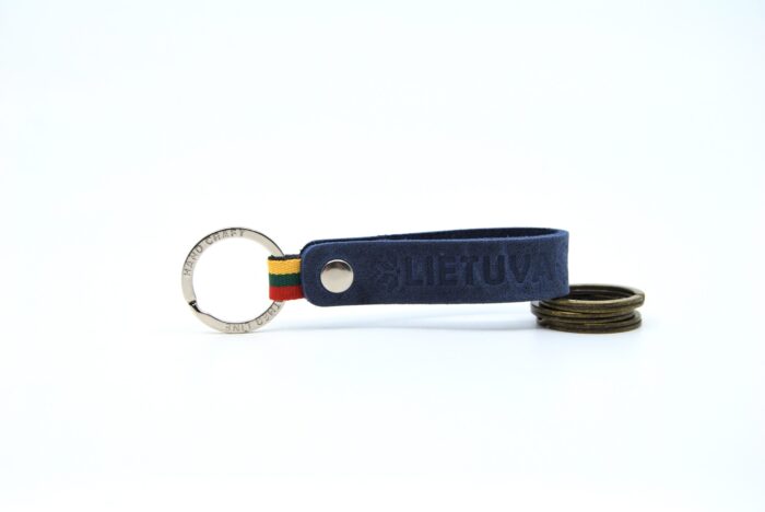 Mėlynas, kaip lietuvškas dangus, raktų pakabukas LIETUVA. Odinis – ilgaamžis.