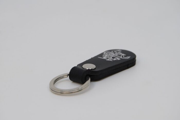 Odinis raktų pakabukas su sidabro spalvos atspaudu ir tokia pačia furnitūra
