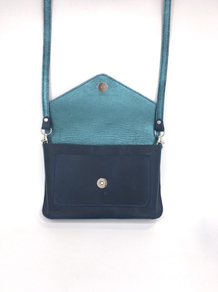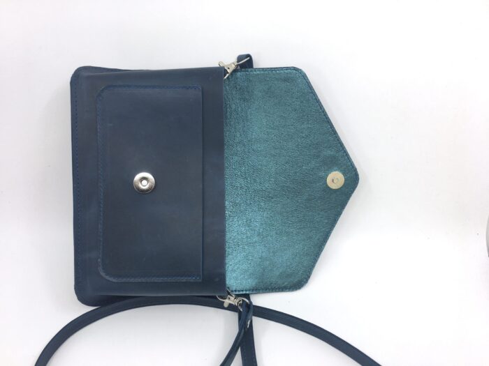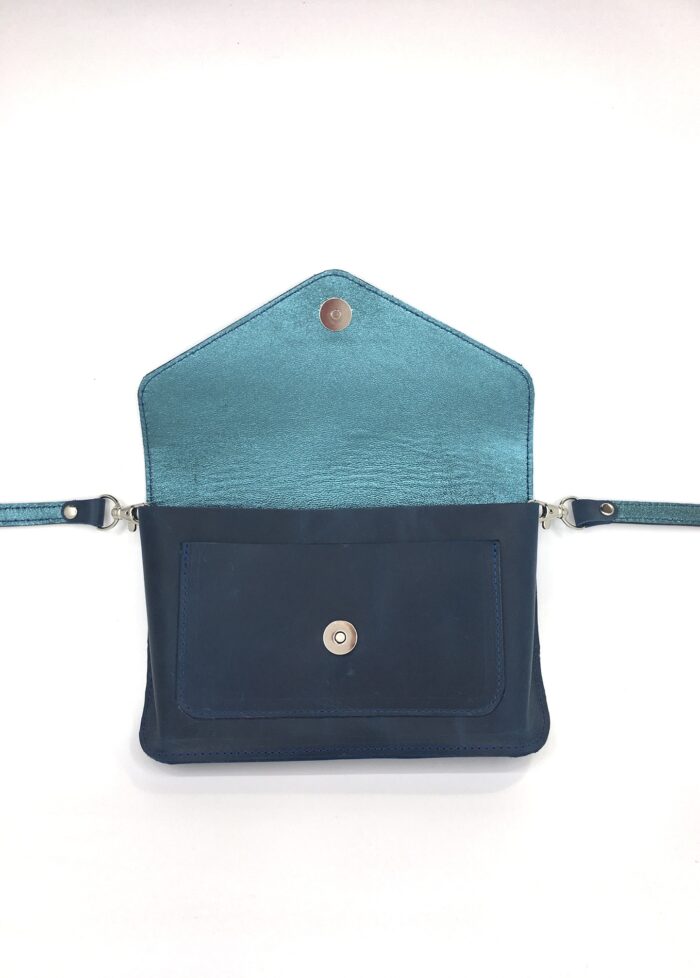 Stačiakampės esmės tačiau užapvalintos išraiškos rankinė – joje nerasite nei vienos aštrios detalės, o aptakios formos kraštai gali byloti apie Jūsų asmenybės diplomatinius gėbėjimus. Rankinės prigimtis – tamsiai mėlyna, bet tikrasis spalvingas ir žėrintis jos charakteris slypi viduje 🙂